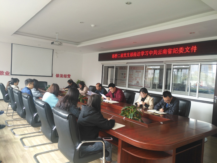 2月22日,路橋二部黨支部組織全體黨員干部職工傳達學(xué)習《中共云南省紀律檢查委員會(huì )關(guān)于十起違規公款購買(mǎi)茶葉等謀取私利典型問(wèn)題的通報》《中共云南省紀律檢查委員會(huì )關(guān)于7起違反中央八項規定精神典型問(wèn)題的通報》《中共云南省紀律檢查委員會(huì )、云南省監察委員會(huì )關(guān)于云南省有色地質(zhì)局原黨委書(shū)記、局長(cháng)郭遠生嚴重違紀違法案件通報》《中共云南省紀律檢查委員會(huì )關(guān)于4起違反群眾紀律典型案件的通報》《中共...