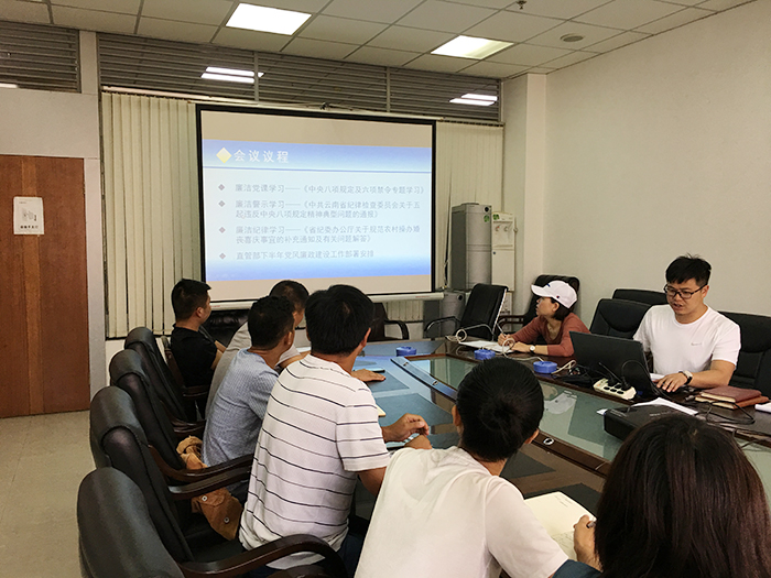 7月9日,第一直管部黨支部召開(kāi)黨風(fēng)廉政建設專(zhuān)題會(huì ),研究部署下半年黨風(fēng)廉政建設工作。 直管部黨支部書(shū)記熊志帶領(lǐng)大家重溫了“中央八項規定”、“六項禁令”的具體內容,分別從經(jīng)費管理、公務(wù)接待、會(huì )議活動(dòng)、公務(wù)出差、公款旅游、臨時(shí)出國、公務(wù)用車(chē)改革、停建與清理辦公用房、操辦婚喪喜慶事宜、工作紀律、廉潔自律11類(lèi)行為進(jìn)行了剖析,以案例說(shuō)紀律,加深直管部人員對“中央八項規定”等精神的理解認知,...