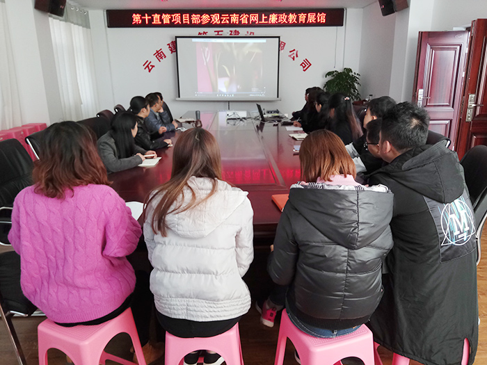 12月12日,公司第十直管項目部組織在昆領(lǐng)導班子成員、在昆黨員及二線(xiàn)職工召開(kāi)廉政教育學(xué)習會(huì )。 會(huì )上運用投影儀放映的方式瀏覽了云南省網(wǎng)上廉政教育展館進(jìn)行了集中參觀(guān)。云南省網(wǎng)上廉政教育展館由廉政教育基地集群、廉政圖書(shū)館、廉政資料庫、廉政影院四大模塊組成。大家集中觀(guān)看了展館“廉政影院”里的廉政教育影片《權利的迷途》,影片以云龍縣...