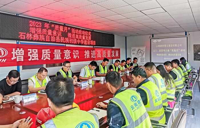 9月13日上午,五〇二直管項目部在石林彝族自治縣民族初級中學(xué)建設項目組織召開(kāi)了以“增強質(zhì)量意識 推進(jìn)高質(zhì)量發(fā)展”為主題的2023年“質(zhì)量月”活動(dòng)啟動(dòng)會(huì ),直管部班子成員及各科室負責人、建設單位代表、監理單位代表出席此次啟動(dòng)大會(huì )。會(huì )議要求,一是要充分認識“質(zhì)量月”活動(dòng)的重要意義,充分運用責任體系建立、質(zhì)量風(fēng)險分析等質(zhì)量管理手段,全面構建質(zhì)量管理體系和高效運行機制,切實(shí)提高在建項目人員質(zhì)量管理素質(zhì),提升…